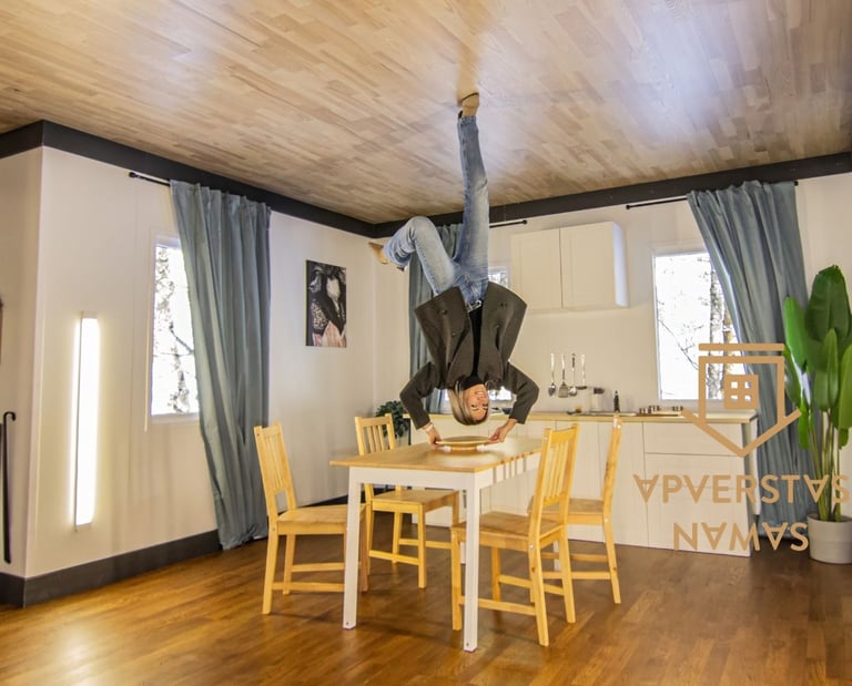 Apverstas namas – tai ne tik optinė iliuzija, bet ir tikras iššūkis jūsų pojūčiams bei logikai. Čia lubos tampa grindimis, baldai „kybo ore“, o kiekvienas žingsnis kelia juoką, nuostabą ir norą sustoti akimirkai... ar padaryti bent 10 nuotraukų!