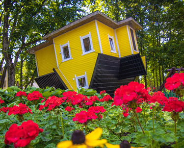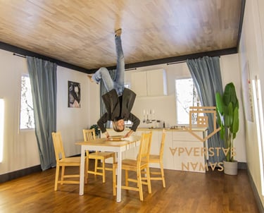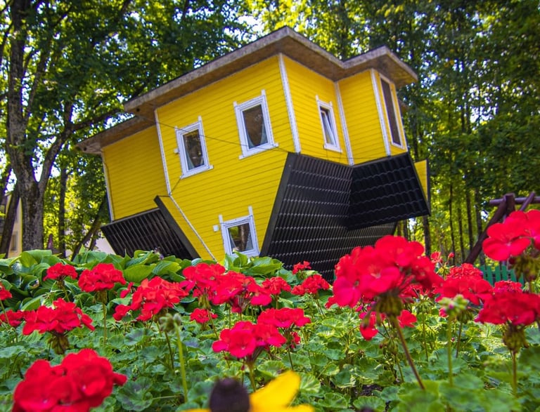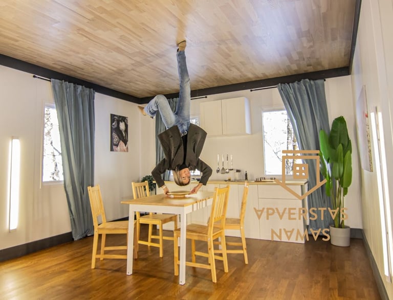 Apverstas namas – tai ne tik optinė iliuzija, bet ir tikras iššūkis jūsų pojūčiams bei logikai. Čia lubos tampa grindimis, baldai „kybo ore“, o kiekvienas žingsnis kelia juoką, nuostabą ir norą sustoti akimirkai... ar padaryti bent 10 nuotraukų!